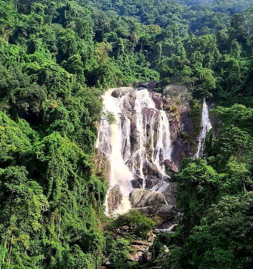 - Multi-tiered waterfall with strong, clear flows during the rainy season