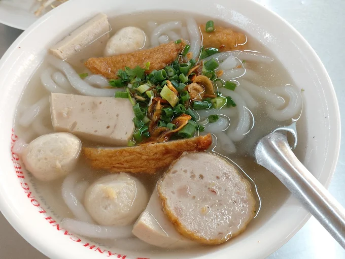 Nước lèo đậm đà, được nấu từ cá biển, tôm và xương ống.