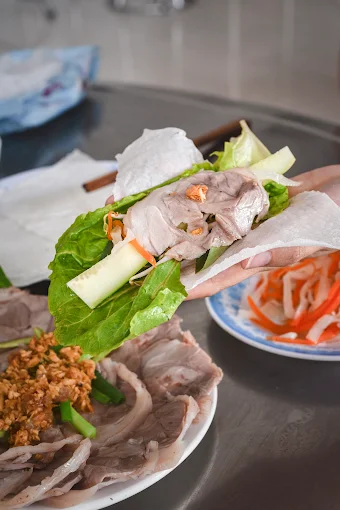 Cách thưởng thức: Ăn kèm với rau sống như giá, rau trâu ổi, kinh giới, rau húng, rau quế, thêm chút ớt băm cay và lát chanh để tăng hương vị.