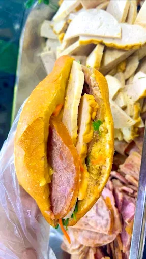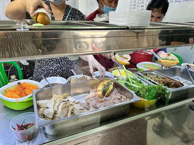 Nhân bánh đa dạng: Pate, thịt nguội, chả, thịt nướng, kết hợp với rau dưa tươi ngon.