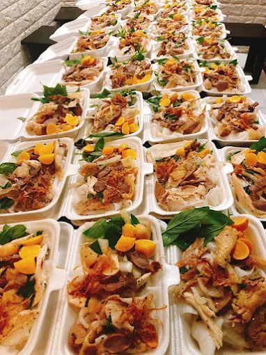 Ngoài ra còn có cháo gà, gỏi gà, chả cây, bánh flan và sữa chua
