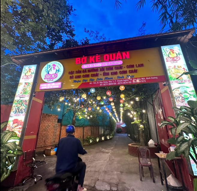 Bờ Kè Quán là một địa điểm ăn uống nổi tiếng tại Thủ Dầu Một, Bình Dương, chuyên phục vụ các món ăn đồng quê, đặc biệt là gà nướng cơm cháy.