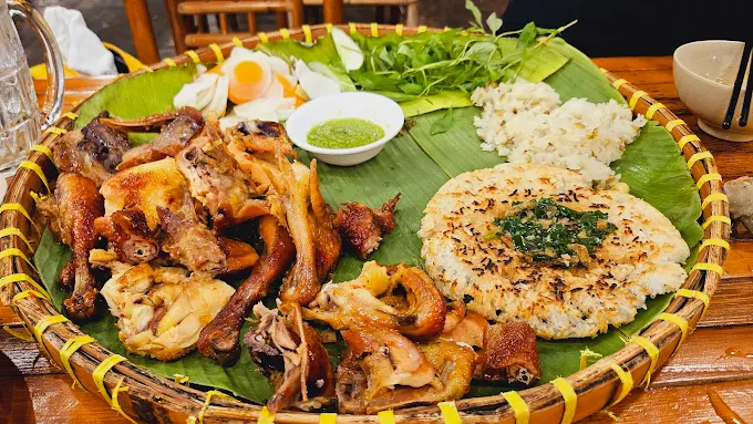 Món ăn nổi bật: Gà nướng cơm cháy, bò kho cơm cháy, giò heo chiên giòn, ếch chiên nước mắm, sườn nướng kiểu Nga, tôm nướng muối ớt.