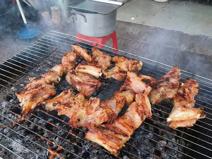 Menu: Món ăn nổi bật là sườn nướng, sườn chéo, cơm tấm được làm từ gạo rời, tơi xốp, ăn kèm với dưa leo, cà chua. Sườn được nướng vừa tới, không quá cháy, giữ được độ mềm và hương vị thơm ngon.