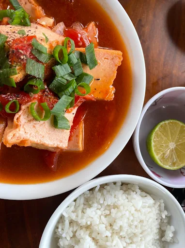 Món ăn nổi bật: BBQ thịt heo, cơm chiên, đậu hũ sốt cà chua, kimchi thịt heo.