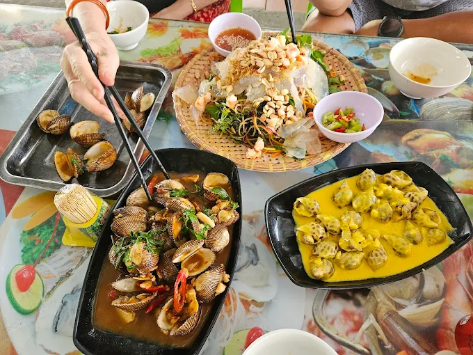 Hải sản tươi sống, được chế biến ngay sau khi đánh bắt, đảm bảo độ tươi ngon và kích thước lớn.