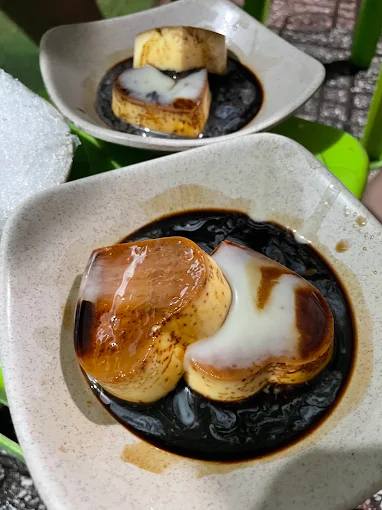Kem flan béo ngậy, kết hợp với nước cốt dừa, tạo độ béo thơm đặc trưng.