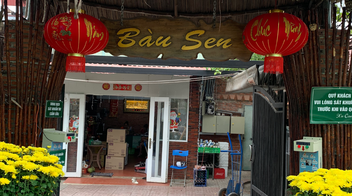 Quán ăn yên tĩnh trong khuôn viên xanh mát, có hồ nước, võng và những căn chòi mộc mạc phục vụ ẩm thực bình dân.
