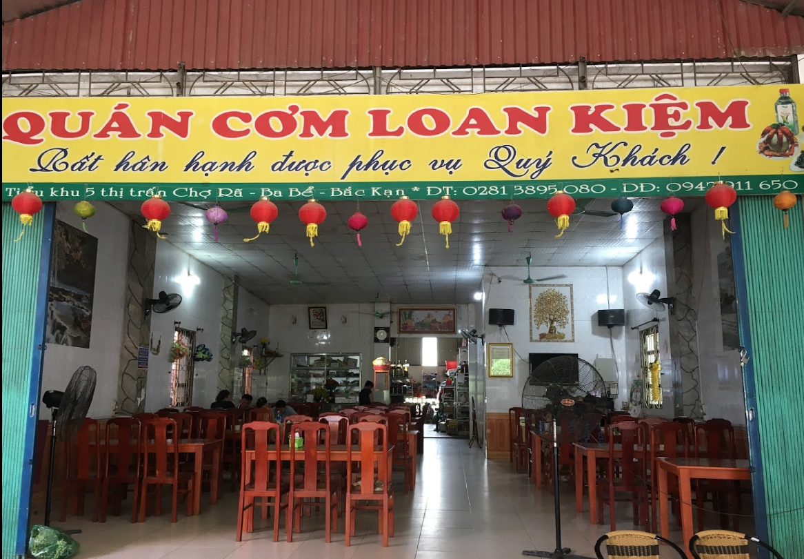 Quán Cơm Loan Kiệm là một quán ăn nằm tại QL 279, Chợ Rã, huyện Ba Bể, tỉnh Bắc Kạn, chuyên phục vụ các món cơm và đặc sản địa phương.