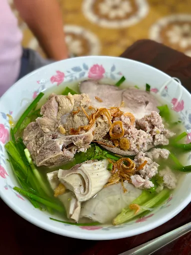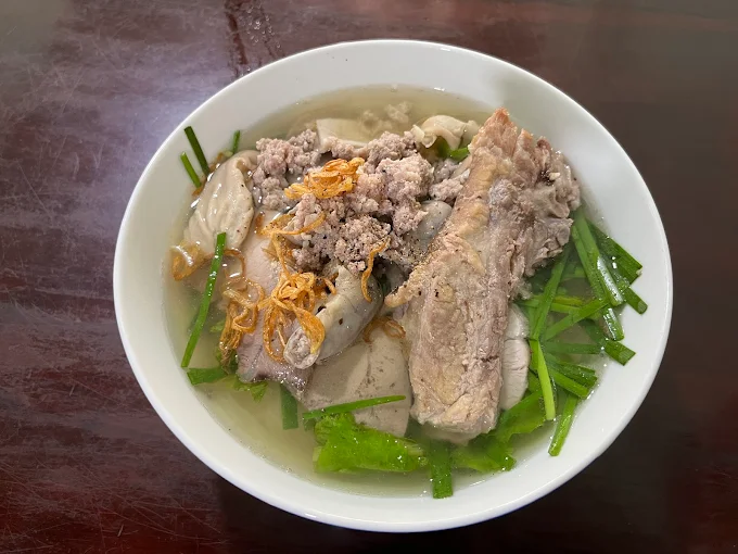 Hương vị đặc trưng: Nước dùng ngọt thanh từ xương hầm, sợi hủ tiếu dai mềm, kết hợp với sườn, gan, lòng, thịt bằm tạo nên tô hủ tiếu đậm đà.
