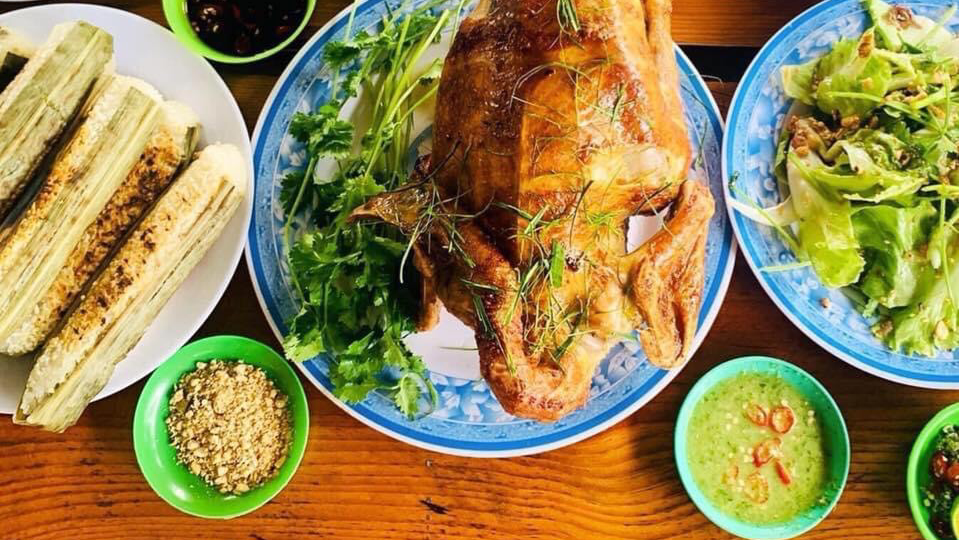 Món chủ đạo: Gà chỉ nướng nguyên con, cơm lam nướng ống nứa, heo rừng nướng và xào sả ớt.
