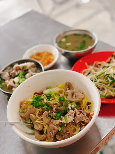 Quán mì Bà Hơ được đánh giá cao nhờ hương vị gia truyền, sợi mì dai ngon, béo thơm.