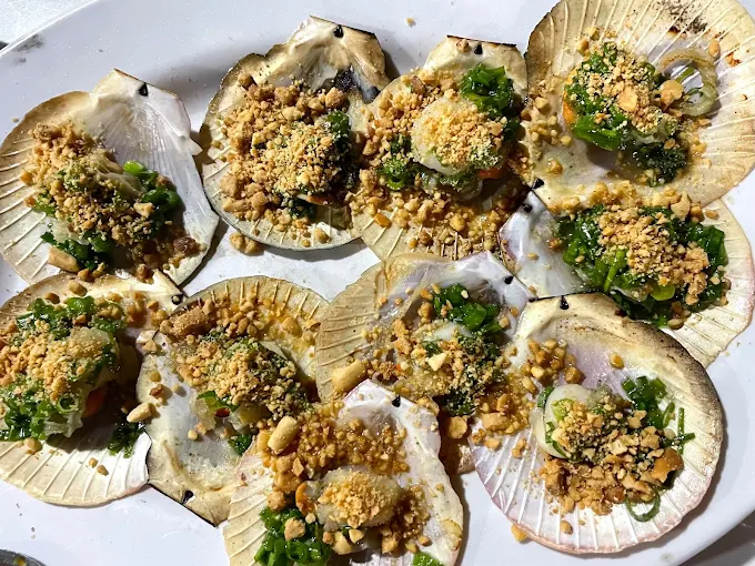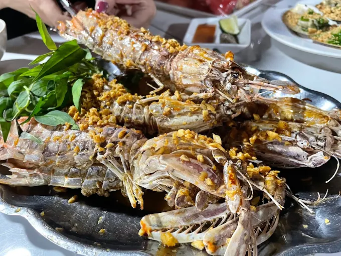 Các món hải sản tươi sống như ghẹ, tôm, cá mú, sò điệp.