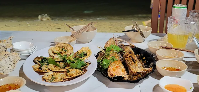 Các món nướng và lẩu hải sản với hương vị đậm đà.