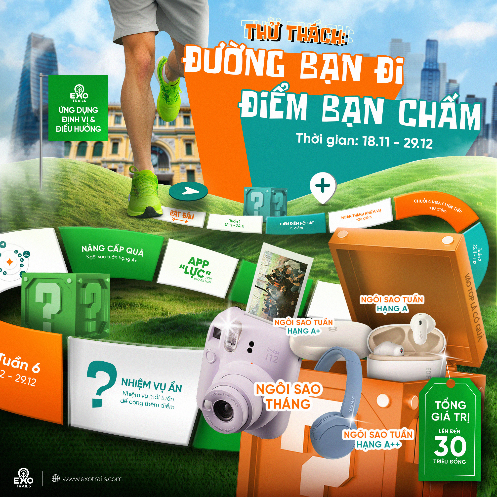 “Đường bạn đi, điểm bạn chấm” của ExoTrails hướng đến việc khuyến khích các bạn lưu lại những khoảnh khắc đáng nhớ trên cung đường của mình và nhìn thấy toàn cảnh hành trình mình đã đi.