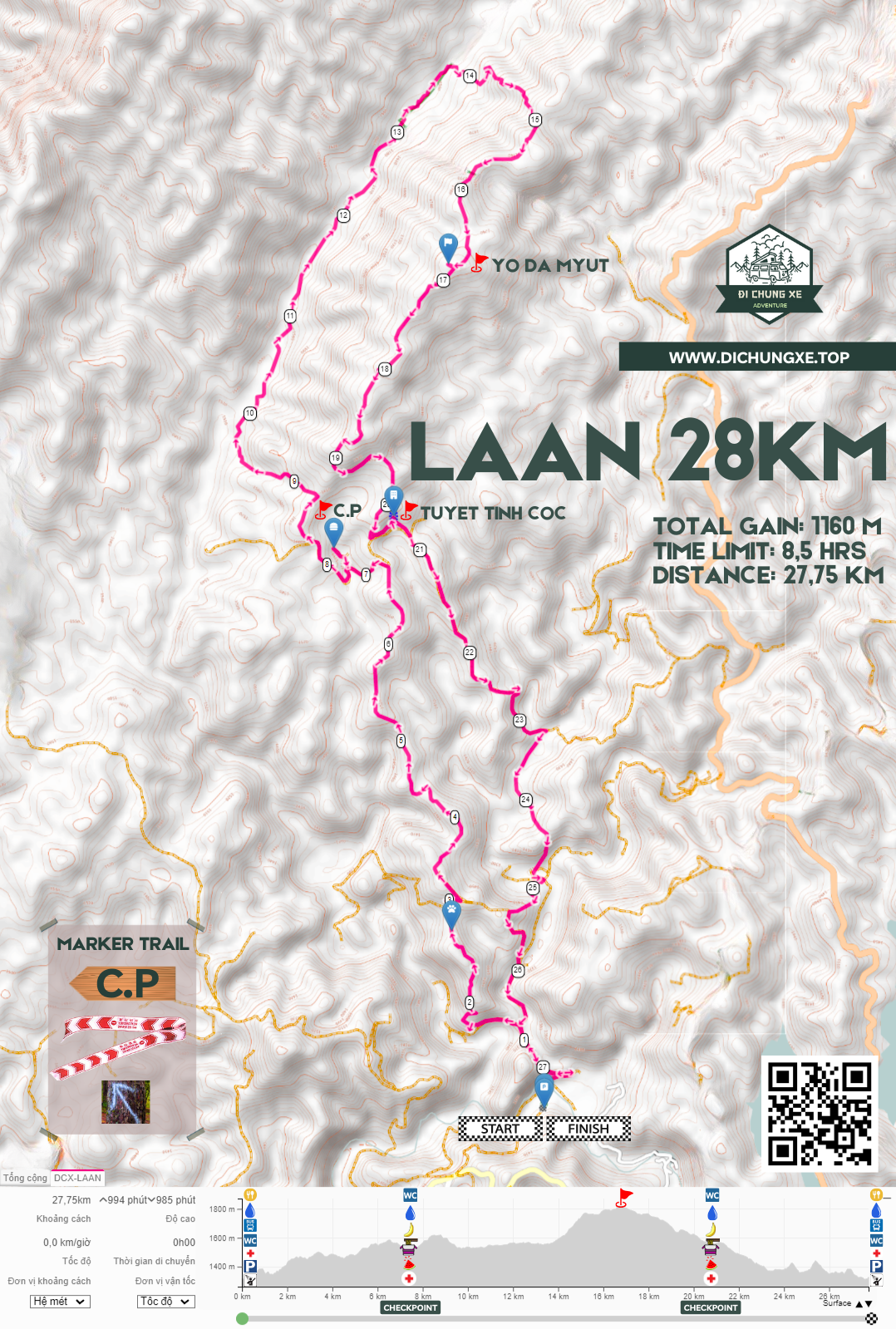 Cung đường chạy Laan rất đa dạng với tổng chiều dài được chia thành các loại địa hình khác nhau: