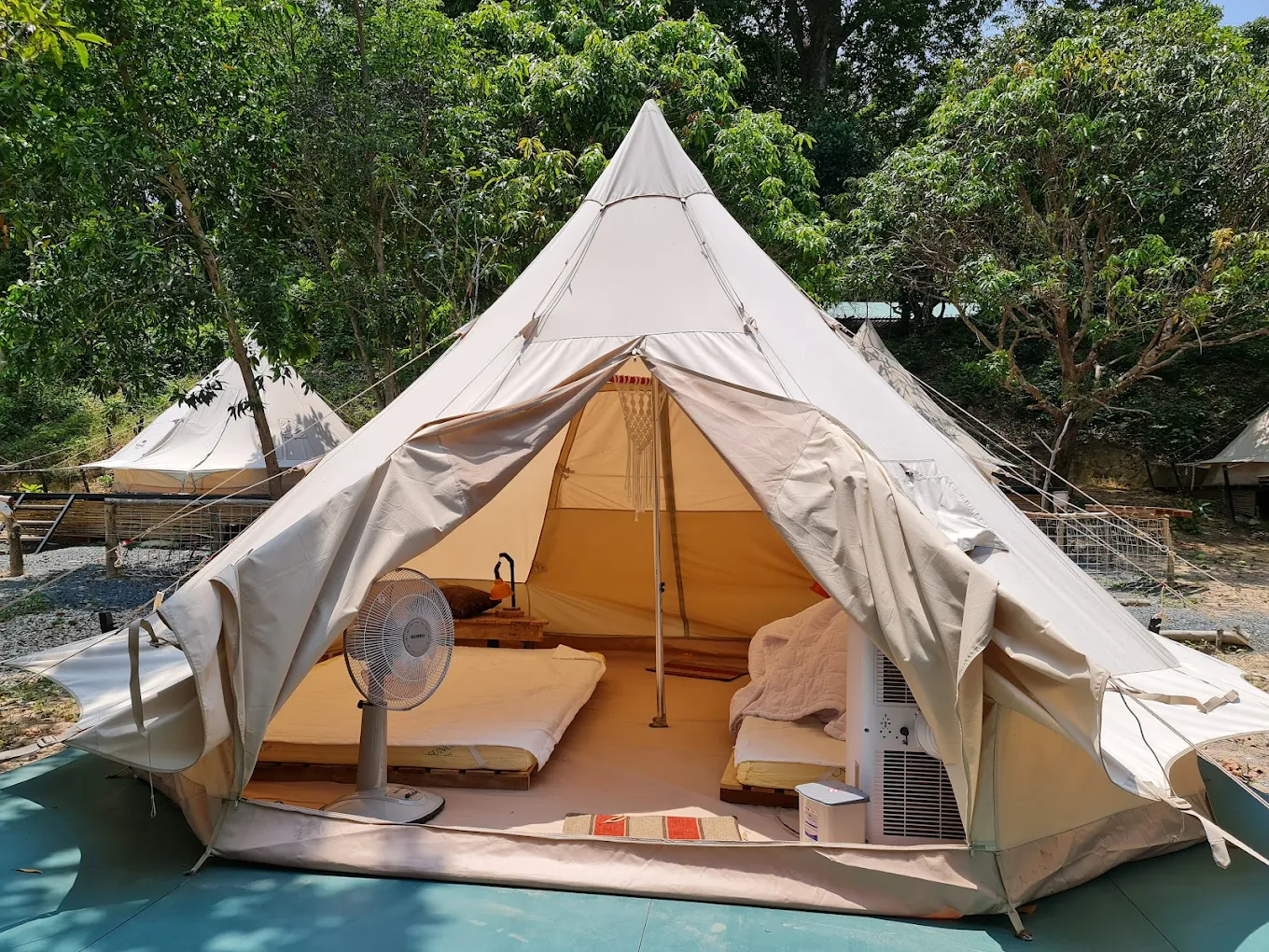 Phong cách: Glamping – kết hợp giữa camping và resort, với lều trại cao cấp, đầy đủ tiện nghi nhưng vẫn giữ được sự gần gũi thiên nhiên.
