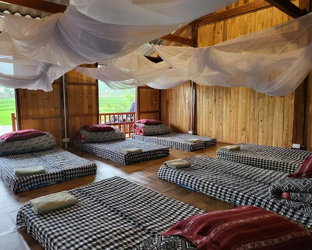 Không gian nghỉ dưỡng: Các phòng nghỉ tại đây có view núi, được thiết kế với phong cách nhà sàn truyền thống, tạo cảm giác gần gũi với thiên nhiên.