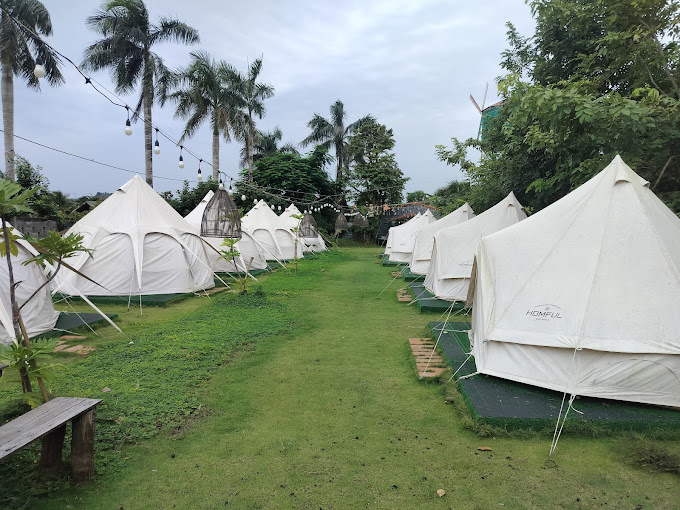 Chỉ với 699.000 VNĐ/đêm, bạn có thể trải nghiệm một đêm cắm trại trong lều, tắm hồ bơi, đốt lửa trại, ăn tối và ăn sáng giữa thiên nhiên.