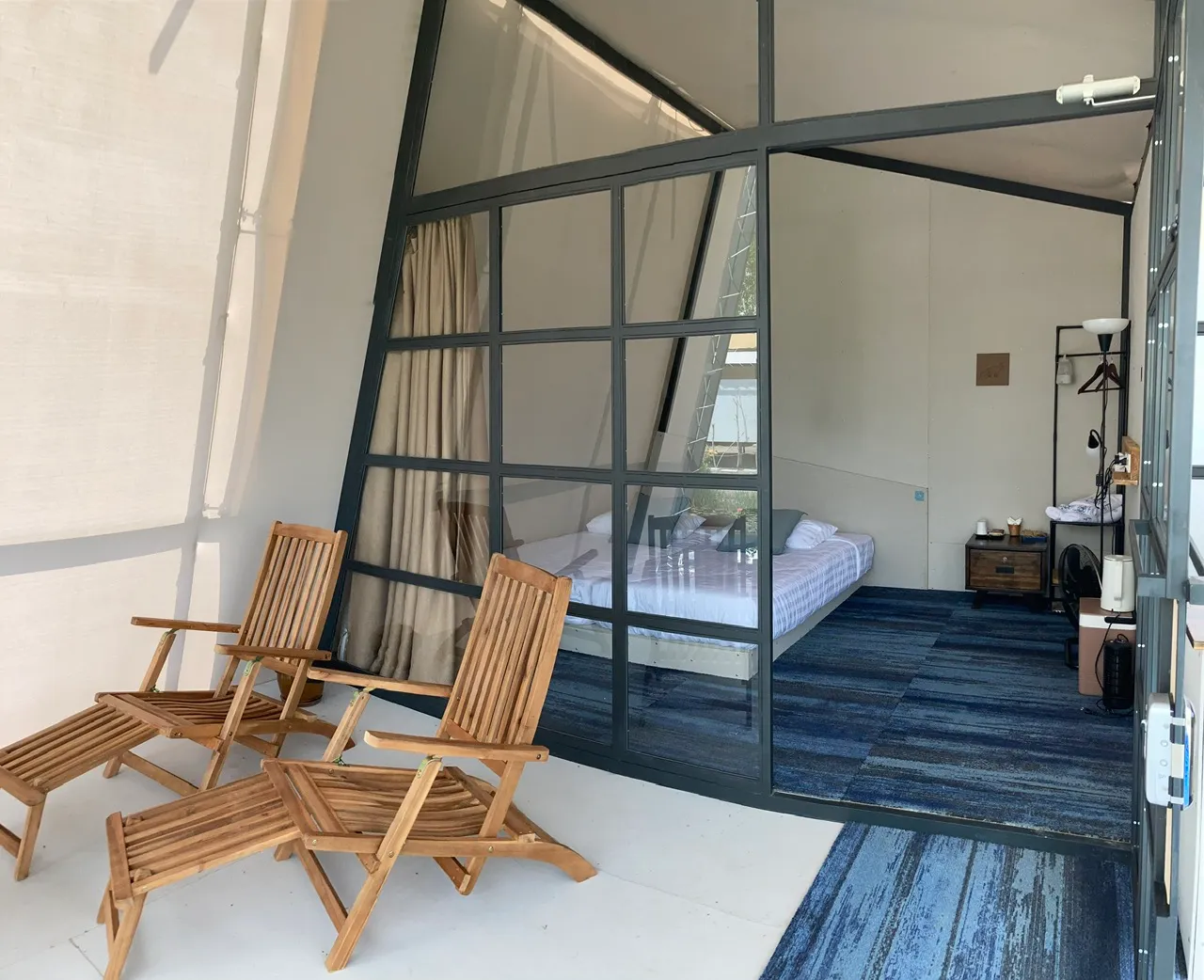 TimeOut Island Glamping Resort có 16 lều hiện đại gồm 3 loại. Sức chứa của một lều được khoảng 4 người.