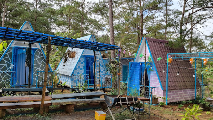 Bungalow dưới tán thông: Homestay có 8 cụm nhà kiểu Bungalow đầy màu sắc nằm dưới những tán thông xanh mát, vừa nổi bật, vừa hòa quyện với thiên nhiên.