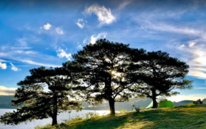 - Ba Cây Thông là một khu vực yên tĩnh, với cảnh quan thiên nhiên tuyệt đẹp, bao quanh bởi rừng thông bạt ngàn. Khu vực này nổi bật với ba cây thông lớn đứng gần nhau, tạo nên một khung cảnh độc đáo và ấn tượng. Khí hậu mát mẻ quanh năm, đặc biệt là vào buổi sáng sớm và buổi tối, mang lại cảm giác dễ chịu cho các hoạt động ngoài trời.