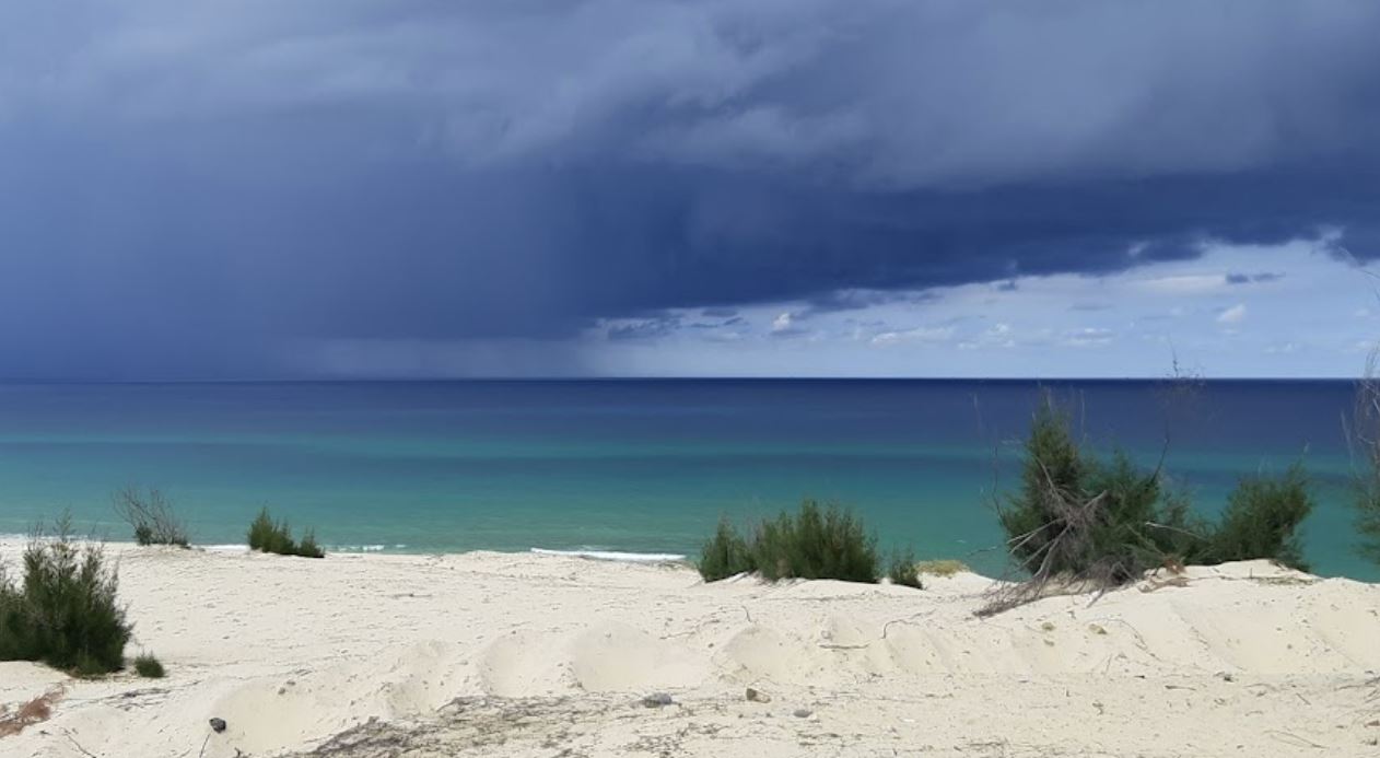 - Bờ biển dài 10km không một bóng cây, mọi người có thể dừng xe trên đường và xuống biển chơi. Nếu bạn đi xe 2 cầu tự tin có thể chạy dọc bờ biển để cắm trại.