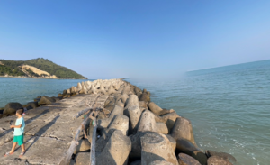 - Bờ kè chắn sóng Đề Gi là một hệ thống công trình chống sóng được xây dựng với mục đích bảo vệ bờ biển khỏi ảnh hưởng tiêu cực, xói lở của sóng biển mạnh. Các khối đá to lớn được xếp chồng chất tạo thành một bức tường mạnh mẽ, chống lại sức mạnh của sóng và giúp bảo vệ bờ biển và cộng đồng địa phương.