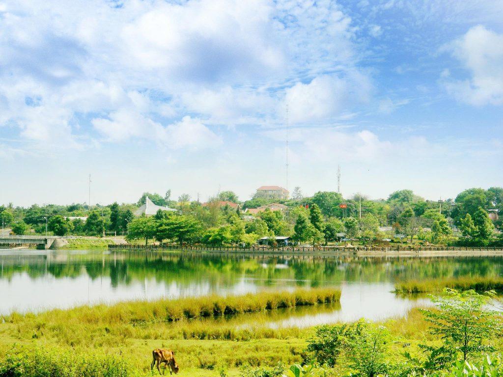 - Hồ Sông Hinh với những vẻ đẹp mặt nước hồ mênh mông được bao bọc bởi rừng núi bạt ngàn, hoang sơ trông chẳng khác gì mắt ngọc huyền bí. Trước đây chỉ là một vùng rừng rộng lớn, giờ đây đã chìm trong biển nước, chỉ còn đâu đó những ngọn đồi nhỏ kiêu hãnh, hiên ngang, còn đủ sức nhô lên giữa hồ.