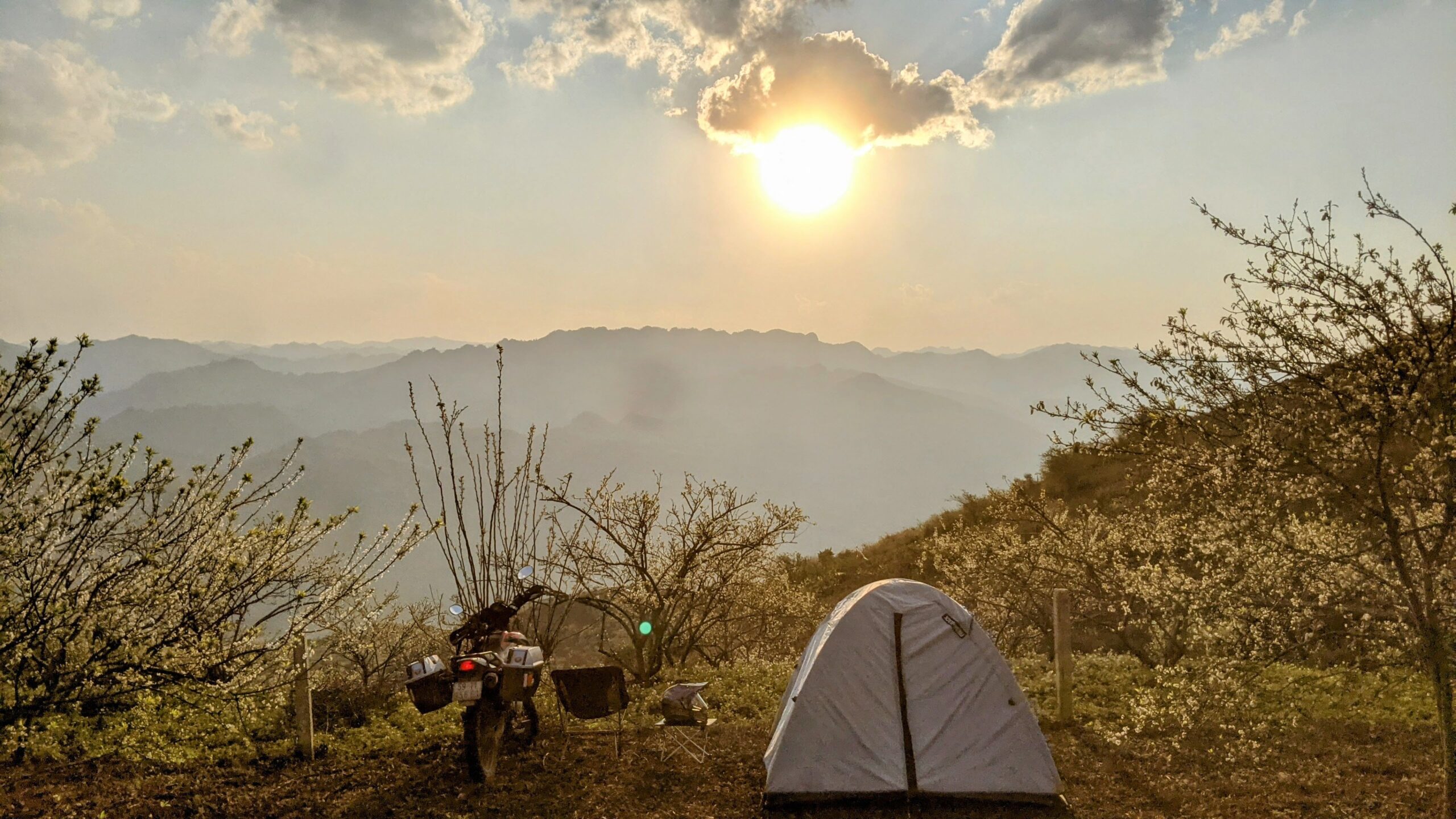 Bãi cắm trại vườn mận nằm trên đường vào Bản người Mông nguyên thủy (hang Táu), phía trên khu check-in Đỉnh Gió Ngàn - Sơn Mộc.