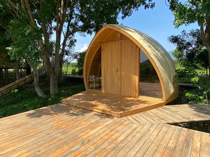 Không gian xanh mát: Khu nghỉ dưỡng nằm giữa cánh đồng lúa và vườn trái cây, mang đến cảm giác thư thái, tránh xa sự ồn ào của phố thị.