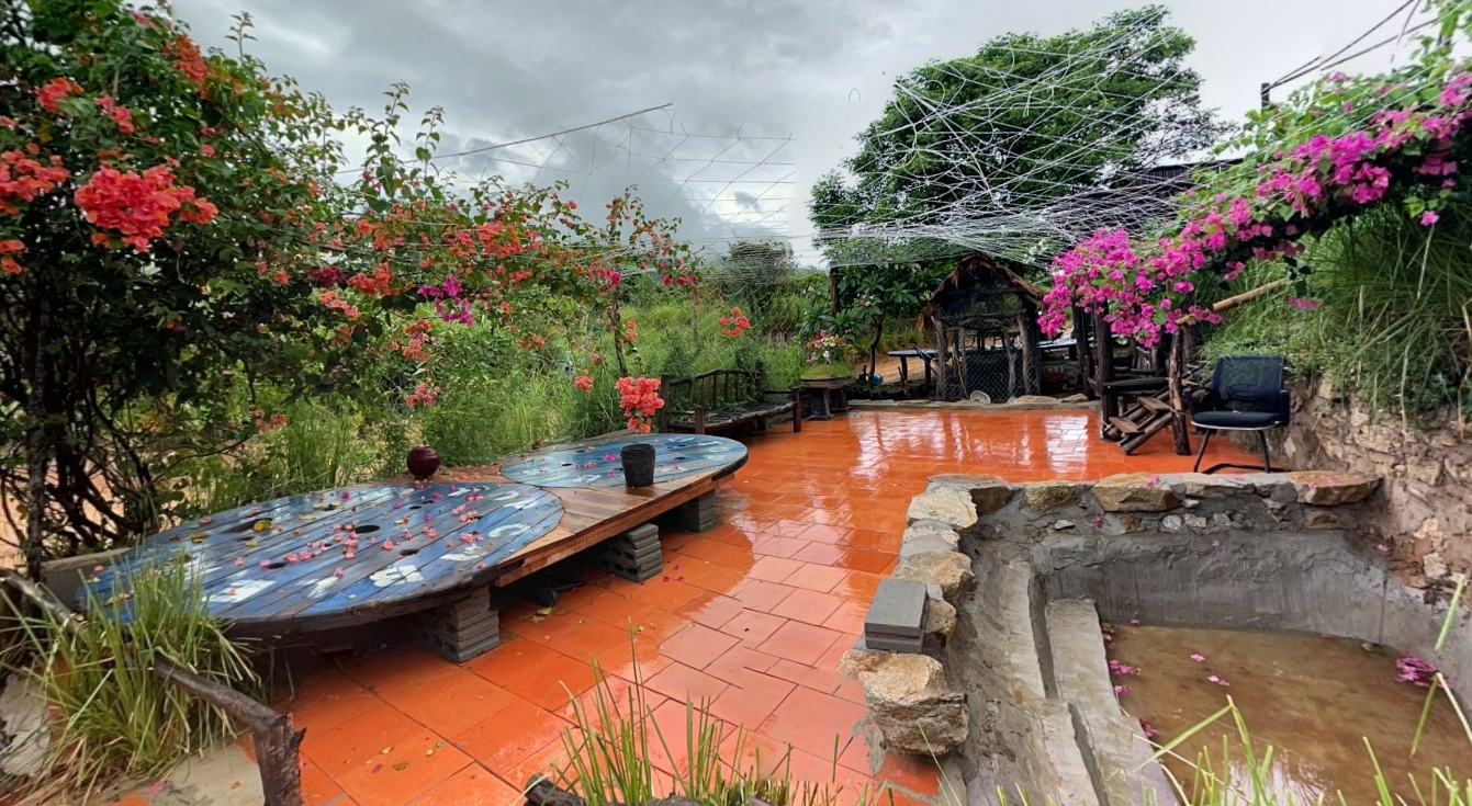 Coffee Panorama Mũi Dinh nằm tại mũi đất nhô ra biển cả, mang lại cho du khách một trải nghiệm tuyệt vời với tầm nhìn mở ra toàn cảnh biển và bãi cát trắng dài. Quán cà phê được thiết kế với kiến trúc mở, tận dụng tối đa ánh sáng tự nhiên và tầm nhìn, tạo nên không gian thoải mái và gần gũi với thiên nhiên.