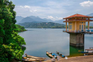 Đi thuyền trên hồ: Ngắm cảnh thiên nhiên hùng vĩ, mặt nước xanh ngọc bích.