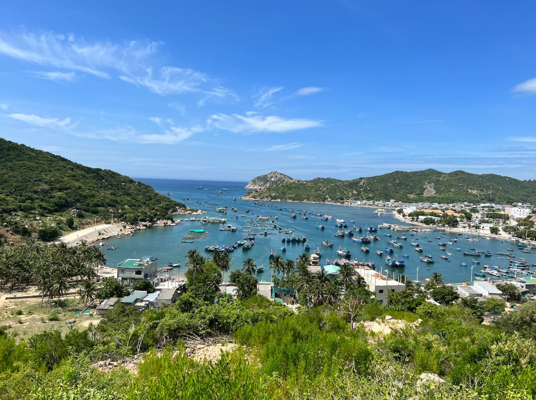 - Khi đến với Vịnh Vĩnh Hy du khách không nên bỏ qua địa điểm check-in siêu đẹp tại vị trí Đèo Cây Cóc Viewpoint, để thấy toàn bộ khu neo đậu thuyền của ngư dân bên dưới, xa hơn là Mũi Cá Heo, khu nhà bè và Mũi Lẫy…
