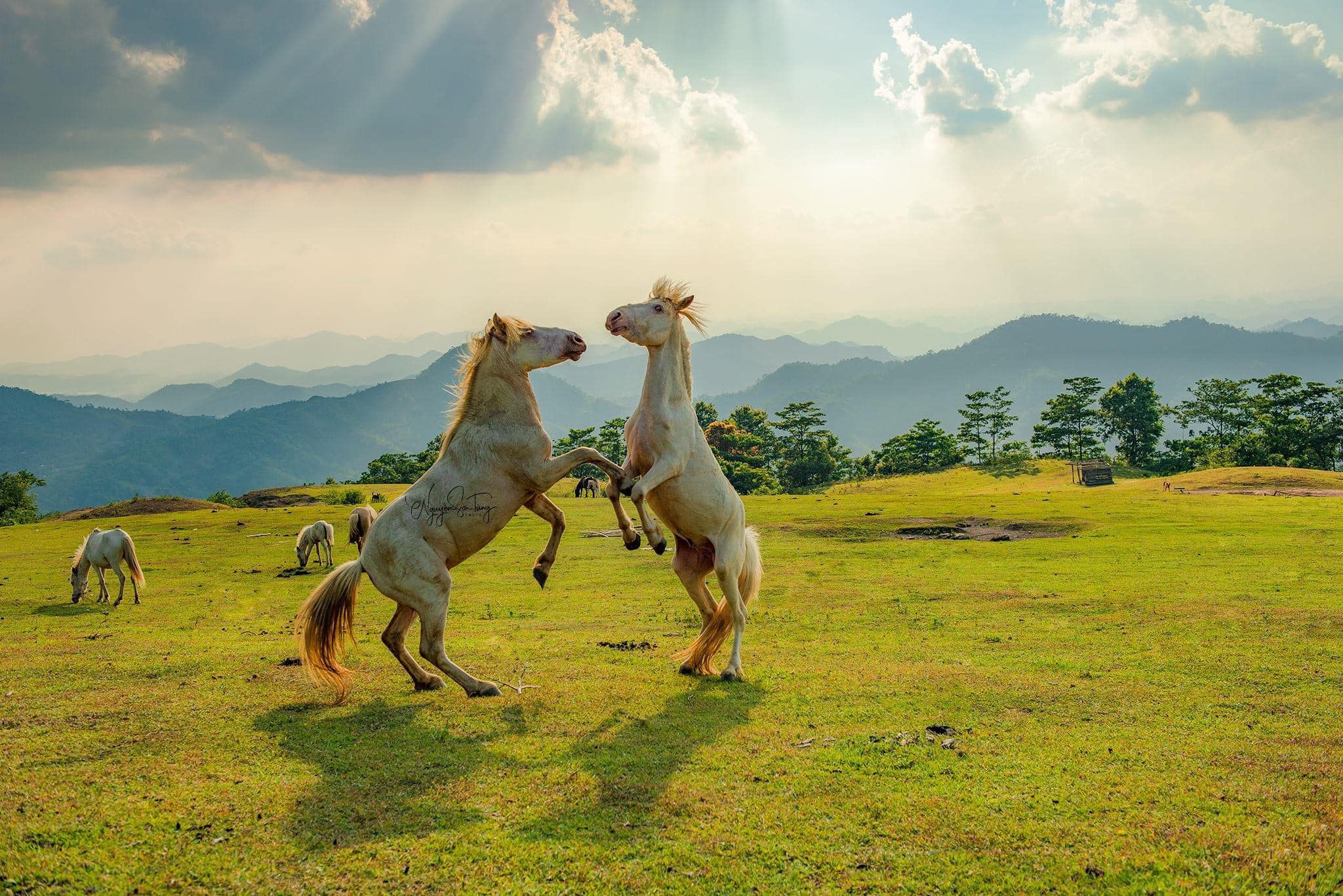 Thảo nguyên Khau Sao là nơi chăn thả hơn 1.700 con ngựa, trong đó có giống ngựa bạch thuần chủng đặc biệt. Những đàn ngựa trắng thong dong gặm cỏ giữa không gian rộng lớn tạo nên một khung cảnh vừa hoang sơ vừa thơ mộng.