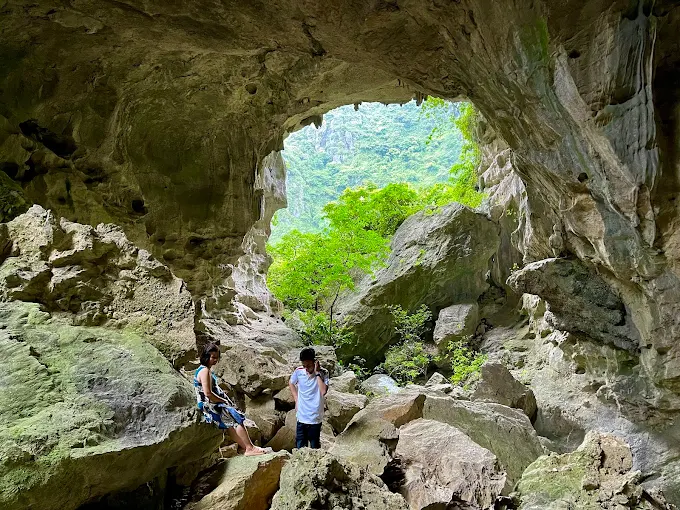 Để đến được cửa động, du khách phải men theo gần 100 bậc đá uốn lượn bên sườn núi. Hành trình này không chỉ là thử thách thể lực mà còn là cơ hội để chiêm ngưỡng vẻ đẹp hùng vĩ của núi rừng Yên Mô.