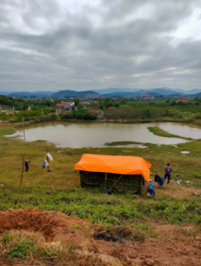 - Cắm trại qua đêm trên bãi đất cao gần hồ.