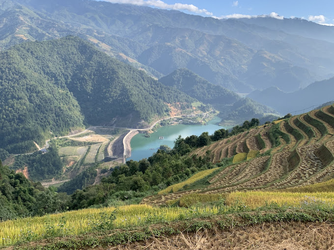 Một điểm đặc biệt của Hồ thủy điện Khao Mang là vị trí nằm giữa cánh đồng lúa bậc thang nổi tiếng tại Mù Cang Chải. Trong mùa xuân và mùa hè, cánh đồng lúa chuyển sang màu xanh tươi mát, và vào mùa thu, bạn có thể chiêm ngưỡng vẻ đẹp của biển lúa mùa vàng rực.