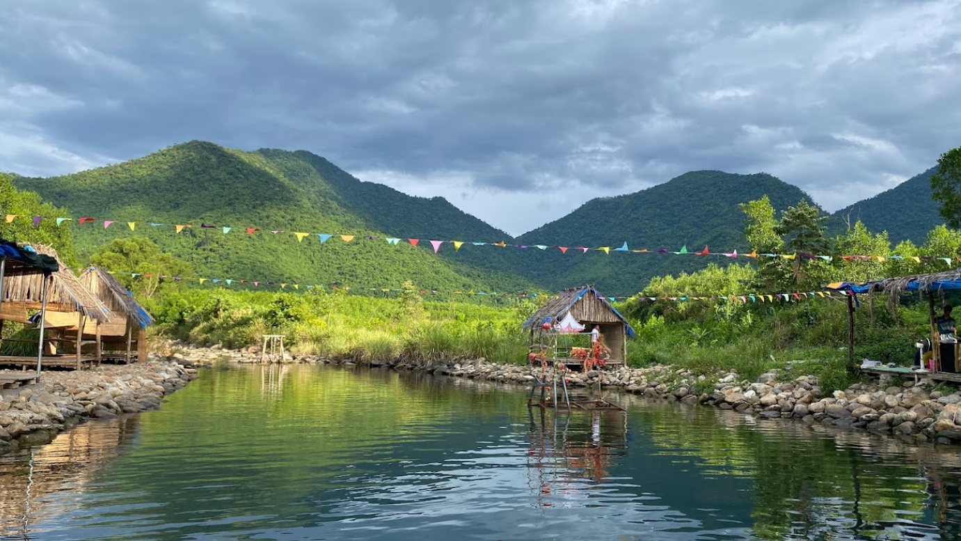 Không gian gần suối, mát mẻ, lý tưởng để nghỉ ngơi và thư giãn
