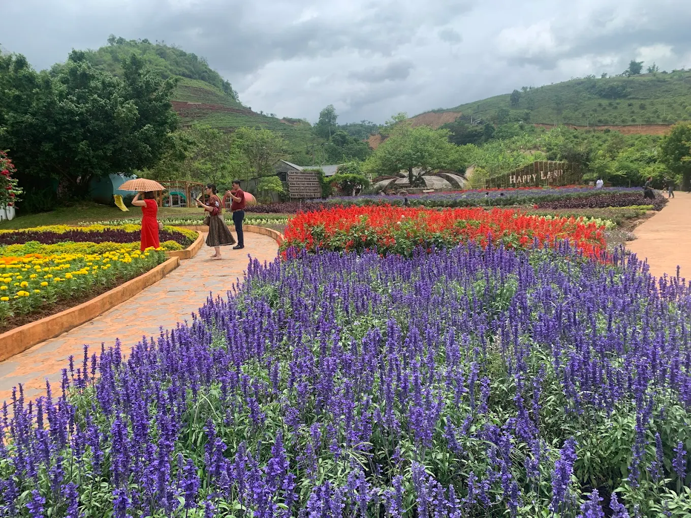 Check-in sống ảo: Với các tiểu cảnh độc đáo như cối xay gió, nhà gỗ, cầu tình yêu, thảm hoa rực rỡ.