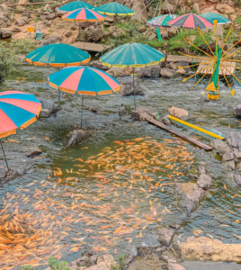 Ngắm cá vàng: Hàng ngàn con cá vàng bơi lội tự nhiên, rất thích hợp để chụp ảnh, quay video.