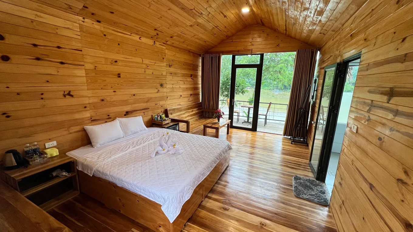 Giá phòng: Từ 1.200.000đ/đêm (trong tuần) đến 1.500.000đ/đêm (cuối tuần), đã bao gồm ăn sáng và sử dụng hồ khoáng