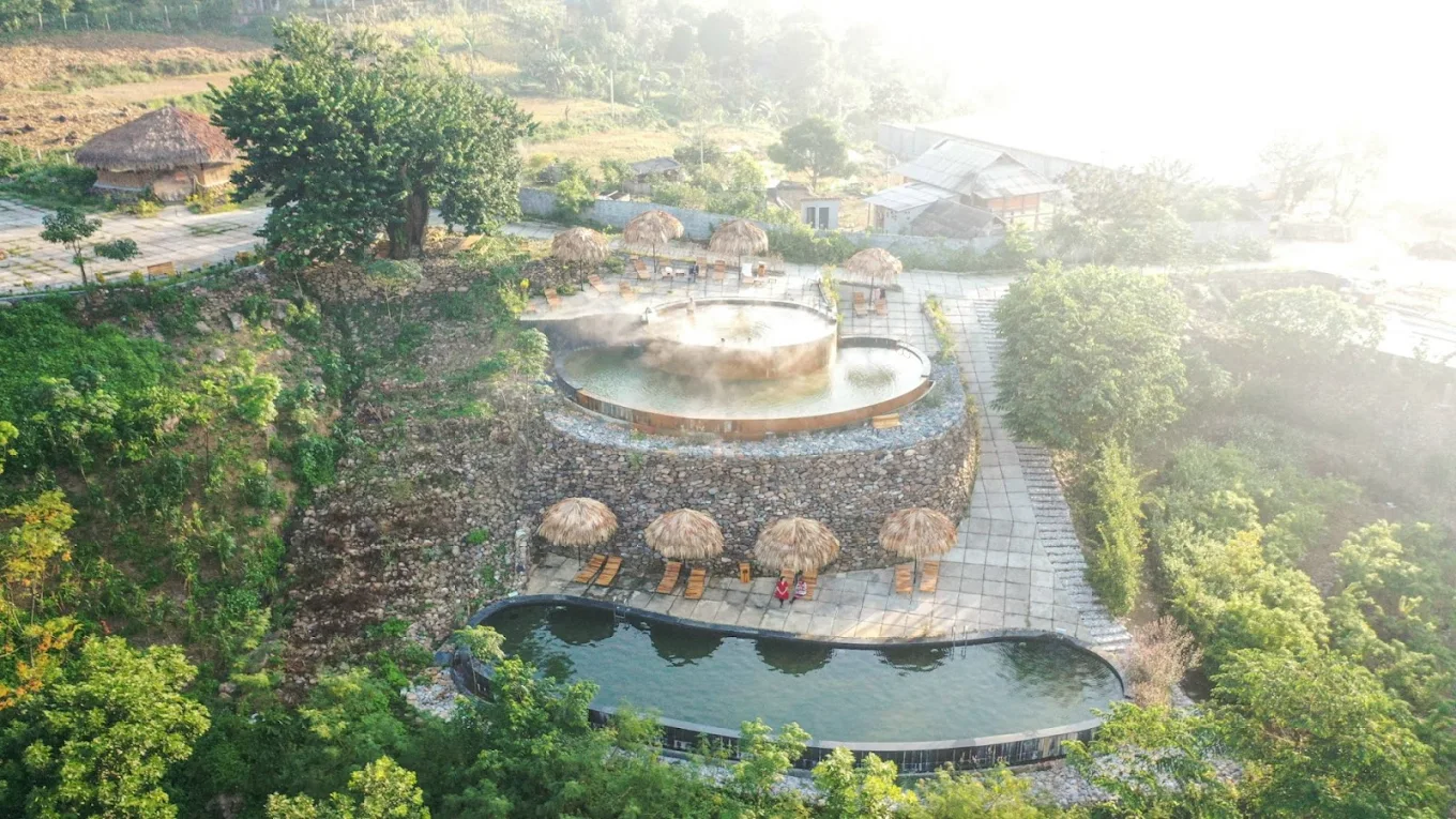 Nguồn khoáng nóng tự nhiên: Nhiệt độ khoảng 44–45°C, giàu khoáng chất tốt cho xương khớp và tuần hoàn