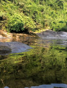 Tắm suối & thư giãn: Hồ nước dưới chân thác có diện tích khoảng 30m², không quá sâu, phù hợp để ngâm mình và tận hưởng làn nước mát lạnh.