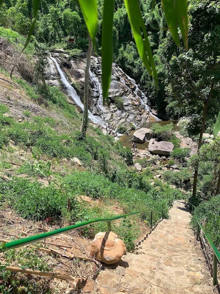 Thác có độ cao lớn, dòng nước chảy quanh năm men theo các bậc đá tự nhiên, tạo nên khung cảnh như dải lụa trắng giữa rừng xanh.