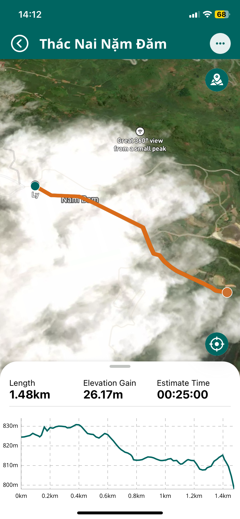 Xem cung đường đi Thác Nai Nặm Đăm trên ứng dụng ExoTrails:
