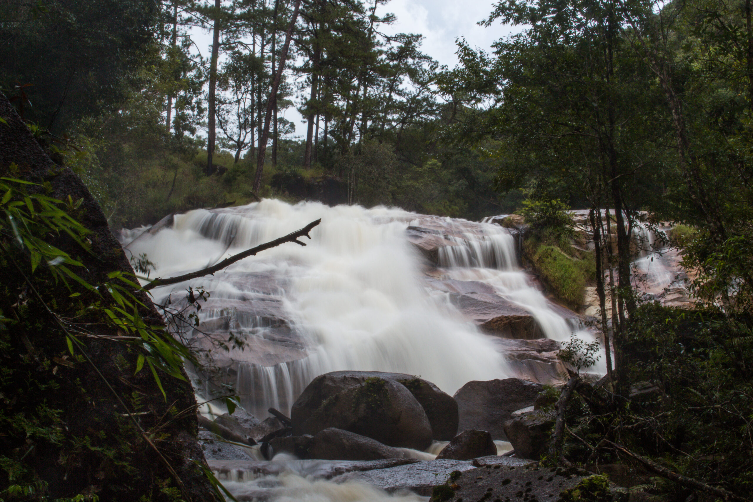 - Thác nằm sâu trong rừng. Xung quanh thác được bao bọc bởi thảm thực vật phong phú với nhiều loại cây rừng nguyên sinh, đặc biệt là các loại cây thông và cây cao su.
