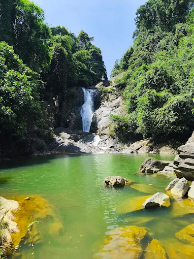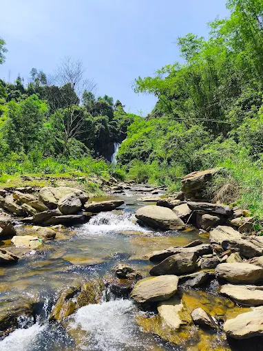 Tắm suối: Dòng nước mát lạnh, trong xanh, thích hợp để thư giãn.