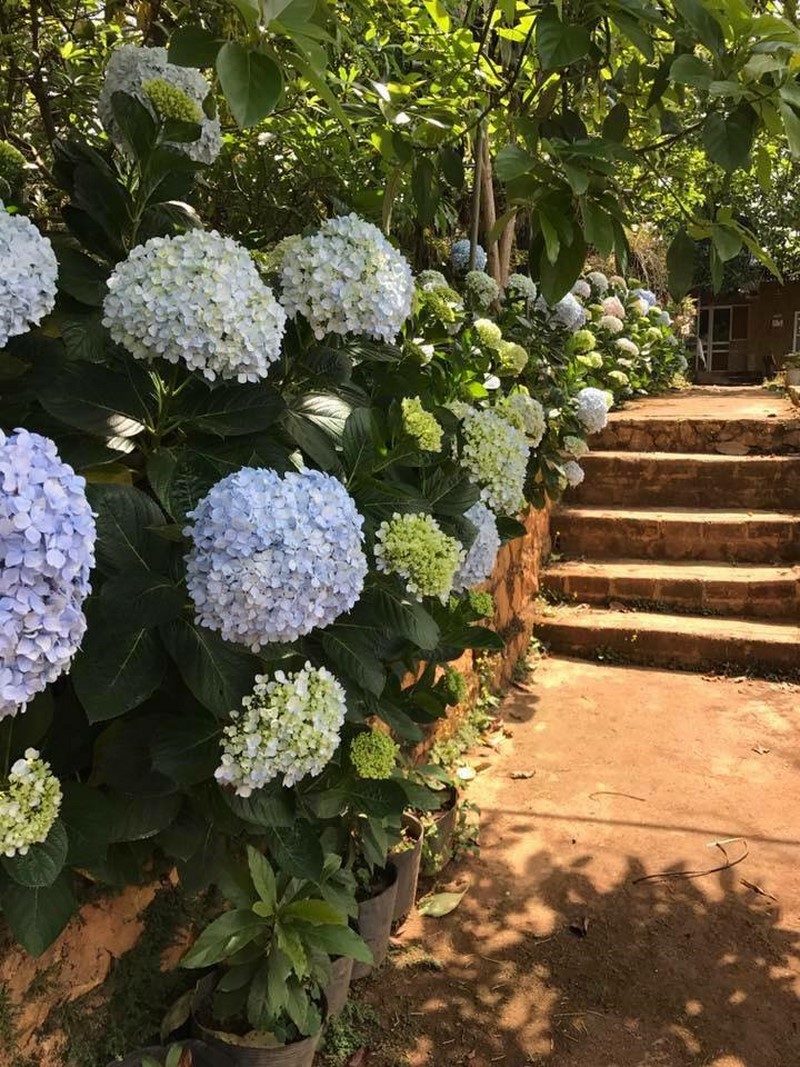 Không gian rộng lớn: Khuôn viên vườn hoa Cẩm Tú Cầu Mộc Châu rộng gần 1ha, với những rặng hoa cẩm tú cầu bung nở, tạo nên một không gian lý tưởng để chụp ảnh và thư giãn.